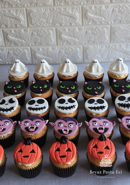 Sevgili Kerim Emre'nin bu sene okulda kutlanacak doğum günü partisi için halloween temalı kapkekler hazırladık. Vanilyalı kek ve beyaz çikolatalı krema ile hazırladık kapkekleri. Nice mutlu yaşlara tatlılar tatlısı, doğum günün kutlu olsun.